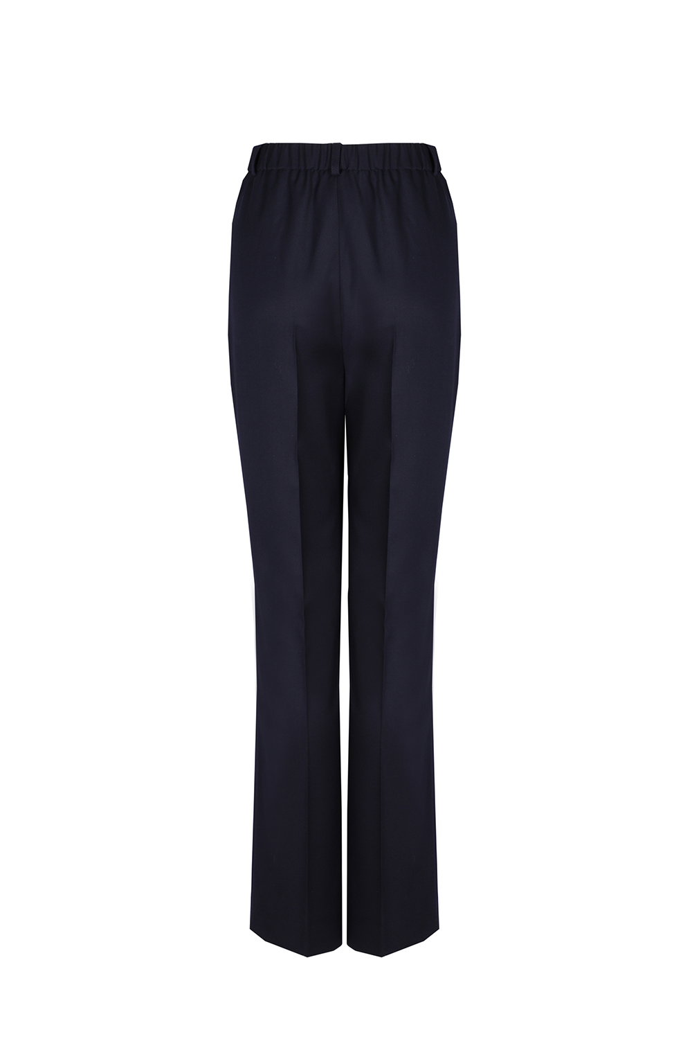 Прямые классические брюки в темно-синем цвете идеально подойдут для создания формальных образов. Стрелки по переду и спинке вытянут силуэт. Пояс со шлевками позволит дополнить образ ремнем, а эластичная резинка по спинке подстроится под любую фигуру, что важно для комфортной посадки.
